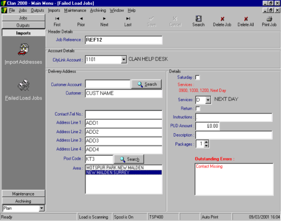 For users of City Link software CityLink CLAN 2000 (Label G version available on request) and QuickBooks. Now your staff can make better use of their fingers (than typing in names and addresses they've already typed in before). Now they can use their fingers to package some more shipments (which is what they'd prefer to do).